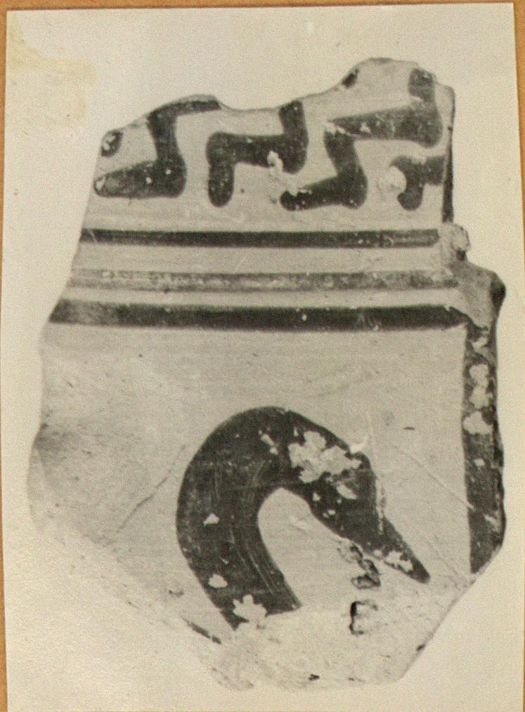 | Description: | Fragment from an openwork stand. Step pattern above and bird's head and neck right. Cf. fragment in the Aegina museum. Subgeometric style. | |