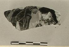 | Description: | Single fragment from the wall of a closed pot, an amphora? Horse's head, right, facing a woman's head, left. Red on mane and forelock of horse; white on face of woman. Unglazed inside. | |