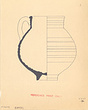 Description:   Small hole in body; otherwise intact. Rounded body on small ring foot, the body lightly ribbed. Ribbed mouth and handle.