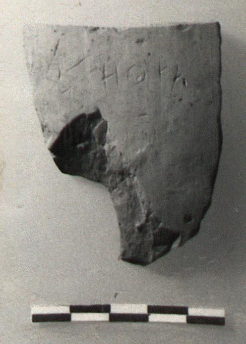 | Description: | From the wall of a plain unglazed pot. Incised outside: <graphic> | |