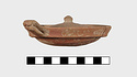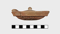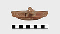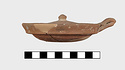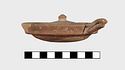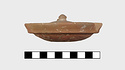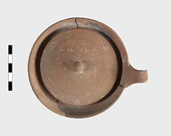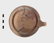 | Description: | Small fragments missing. Shallow pot with one handle; the rim flanged inside to receive the lid. Coarse micaceous red clay; traces of burning inside. Lid slightly convex, with knob handle. | |
