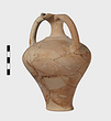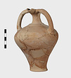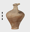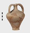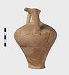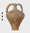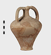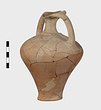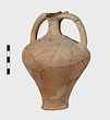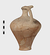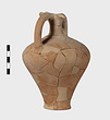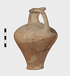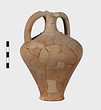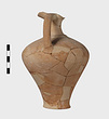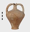 Description:   Mended from many pieces; part of the base, fragments from the wall, and about half the spout missing. Broad rounded shoulder, the body tapering to a small foot. Narrow neck, set off from the shoulder by a ridge. Rolled handles from lip to near outer edge of shoulder. Spout on one side of small mouth.