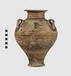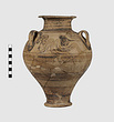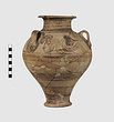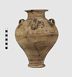 | Description: | A few small fragments of body missing. On shoulder, in handle zone, ivy leaf and trefoil spiral design (cf. Blegen (1937), Prosymna, no. 412: I, p. 403; II, fig. 106). Glaze bands on lower body; the glaze much worn and peeled, the surface of the clay greenish. Ring foot. Lip flat on top. | |