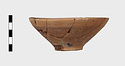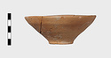 | Description: | Complete save minor chips. A small open bowl with plain rim and small flat foot. Pinkish-buff clay; unglazed. | |
