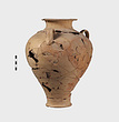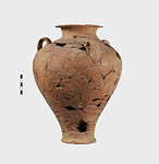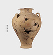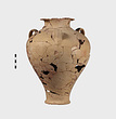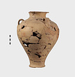 Description:   Mended from very many pieces; a few left over; a few missing; the surface chipped. High-shouldered jar, undecorated; creamy buff surface.