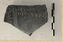 | Description: | From a semi-glazed krater. Incised outside: <graphic> | |