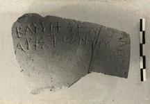 | Description: | From the wall of a coarse unglazed amphora. Incised outside: <graphic> | |