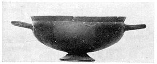 | Description: | Mended from several pieces. Sections of rim, body, and half of one handle restored. Deep body; low flaring conical base; narrow out-turned rim. Thin black glaze inside and outside. | |