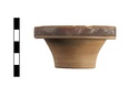 | Description: | Chipped around rim. Flat bottom; sides flaring to thick rim, with vertical face. Unglazed outside except for purple band on rim; inside two purple bands, then dull black over all. | |