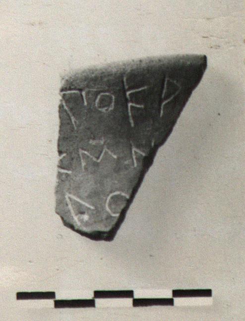 | Description: | Rim fragment of a cooking ware pitcher. Incised outside: <graphic> | |