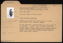 Description:   Similar in shape and condition to P 17962 (ΝΝ 2967), but somewhat larger. On the shoulder a draped figure to each side of a palmette. Below, left to right, standing draped figure right, with spear; a second draped figure; then an armed figure with shield and spear, left; and two standing draped figures, left, each with a spear.