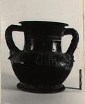 | Description: | All of the rim, one handle, and fragments of the body restored. Ring foot; very squat, slightly angular body; twisted handles. Decoration in thinned clay paint and white. On the neck, bands and ivy tendrils; on the shoulder, checkerboards and diminishing squares. A pair of scraped grooves around the base, and another at the top of the shoulder. Good black glaze. | |