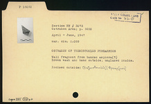 | Description: | Wall fragment from banded amphora(?). Incised outside: <graphic> Brown wash and band outside; unglazed inside. | |