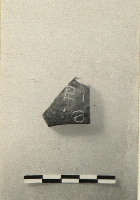 | Description: | Fragment from semi-glazed oinochoe. Incised outside: <graphic> Pinkish clay; thin brown wash outside. | |