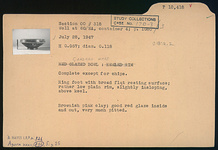 Brownish-pink clay; good red glaze inside and out, very much pitted.