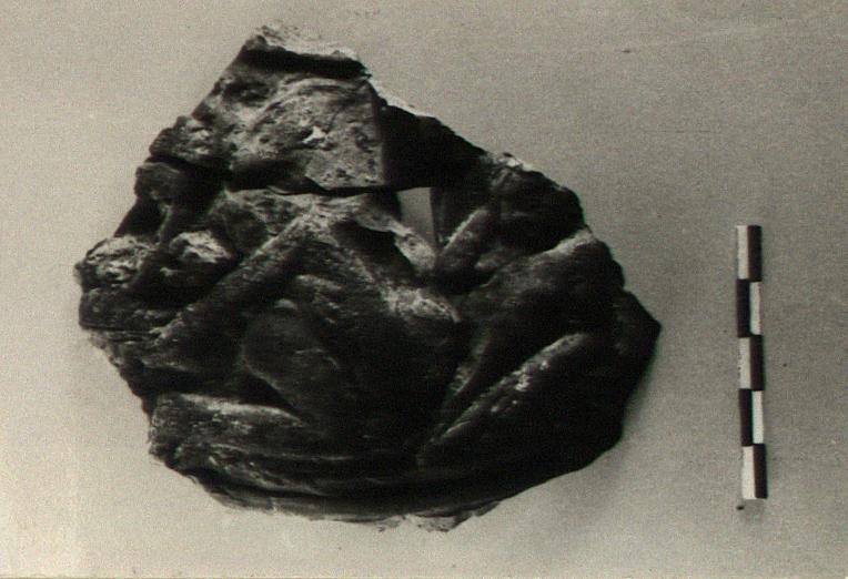 | Description: | Mended from several pieces; from the shoulder of a vase, or perhaps from a lid. Surface chipped, and considerably incrusted. Erotic symplegma. Light red clay; purplish-red glaze. Mold made. ADDENDA Import, Cypriot? (JWH). | |