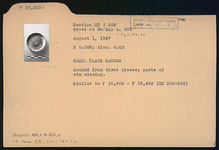 | Description: | Mended from three pieces; parts of rim missing. Restored in plaster. P 18460-P 18463 (ΠΠ 256-ΠΠ 259) are similar. | |