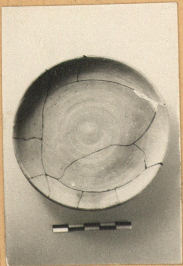 | Description: | Mended from several pieces; small chip missing from side. Flat bottom, left rough; sides rise slightly to plain rim. Similar to series P 18460 (ΠΠ 256) but larger; as P 18466 and P 18467 (ΠΠ 262, ΠΠ 263). | |