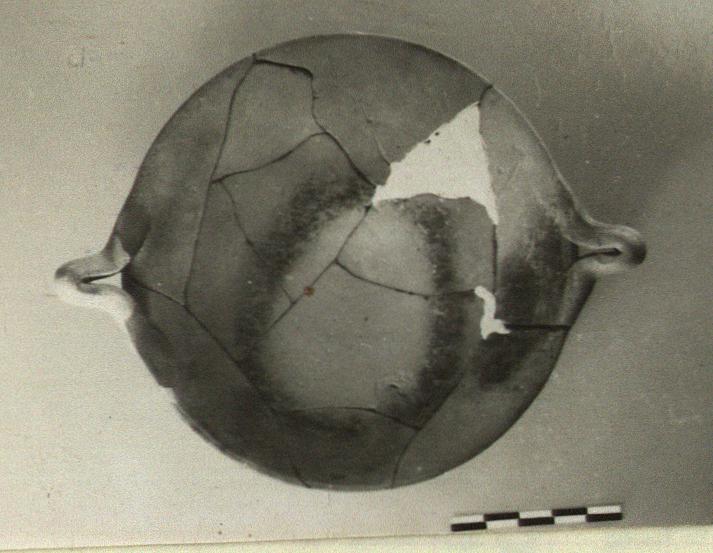 | Description: | Mended from many pieces; one handle and small fragments of floor restored. Similar to P 18576 (ΝΝ 3738) but with no trace of glaze. Much burned. ADDENDA P 18576: Roughly wheelmade, with flat bottom and plain rim. Two ribbon handles at rim. Unglazed, except for traces of thin wash on and around handles, no bands on floor. | |