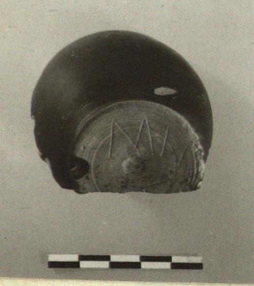 Description:   Fragment from the lower part of a small black glazed olpe. Disk foot, slightly projecting, unglazed beneath.