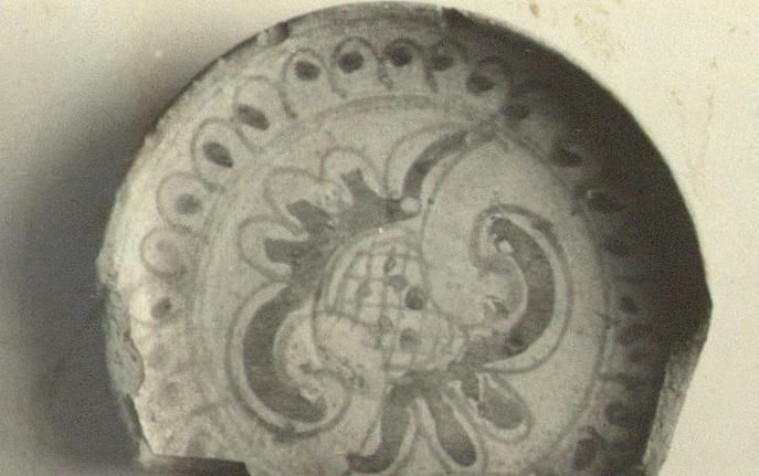 | Description: | Large piece of one side gone. A shallow bowl, with flat center, and slightly incurving rim. High ring base. In the center, a double palmette; about the rim on the inside a scallop and dot design; yellow glaze on the outside, with the underpart of the base reserved. Pinkish-buff clay, with bits. | |