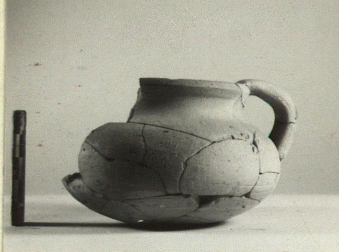 | Description: | Mended from many pieces; the body and rim missing at the front. Similar in shape and fabric to P 19057 (ΝΝ 4166), but more squat and the mouth wider. ADDENDA P 19057: Squat round-bottomed pot with thickened flaring rim; band handle from rim. Wheel made of rather coarse pinkish-buff clay; cooking pot shape but not cooking pot fabric. | |