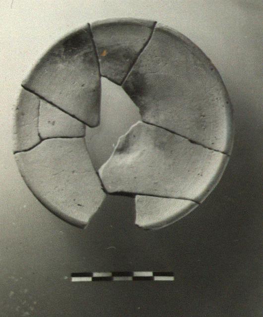 | Description: | Mended from several pieces; a small part of the rim and part of the floor missing. Shallow saucer on broad flat bottom, left rough from the wheel. The rim thickened and slightly upturned. Pinkish-buff clay; warped. Faint traces of glaze on the floor. | |