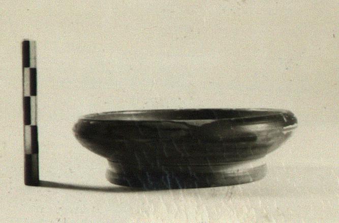| Description: | Intact except for small chips. Low ring foot with broad resting surface. Thickened rim incurved. Pinkish-buff clay; red glaze fired over all except reserved resting surface and broad band at junction of foot and wall. | |