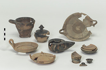 | Context: | House N, S.W. room, tile floor strosis, brown, with fragments from scattered pyre. | |