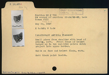 | Description: | Small piece from shoulder with head of Athena, left. Front flaps of helmet turned up in two ear-like points which project into upper border. White on face and helmet flaps, worn. Matte black paint inside. | |