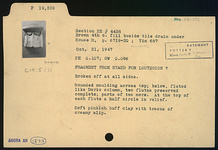 Description:   Broken off at all sides. Rounded moulding across top; below, fluted like Doric column, two flutes preserved complete and parts of two more. At the top of each flute a half circle in relief.
