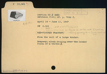 | Description: | From the wall of a large krater. Figure in chiton and himation moving quickly to right. | |