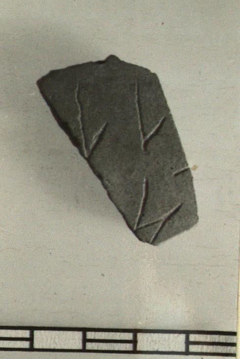 | Description: | From the wall of a coarse unglazed pot. Incised outside: <graphic> | |