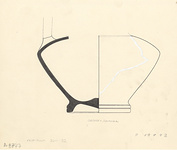 | Description: | Fragmentary; preserved from middle of shoulder to base, with missing fragments. Shoulder sharply set off from body. Stub of handle at edge of shoulder. Metallic black glaze. Pinkish-buff clay. | |