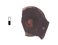 | Description: | From the floor of a plate or bowl; ring foot with broad resting surface. Stamp in center of floor: <graphic> Reddish clay; glaze finished irregularly; exterior largely red, interior largely black. Cf. Iliffe I (1936), p. 41. | |
