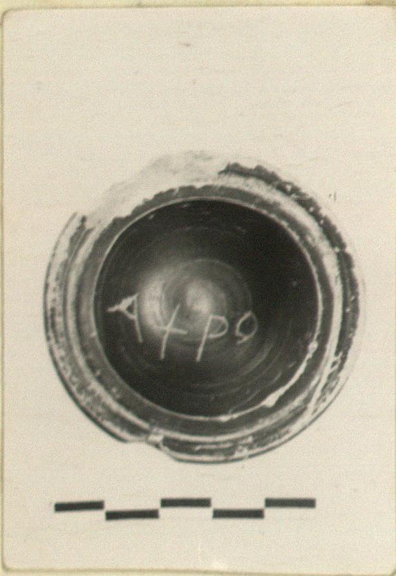 | Description: | Foot of a black glazed kantharos with short stem; mid-fourth century type. Incised underneath: <graphic> | |