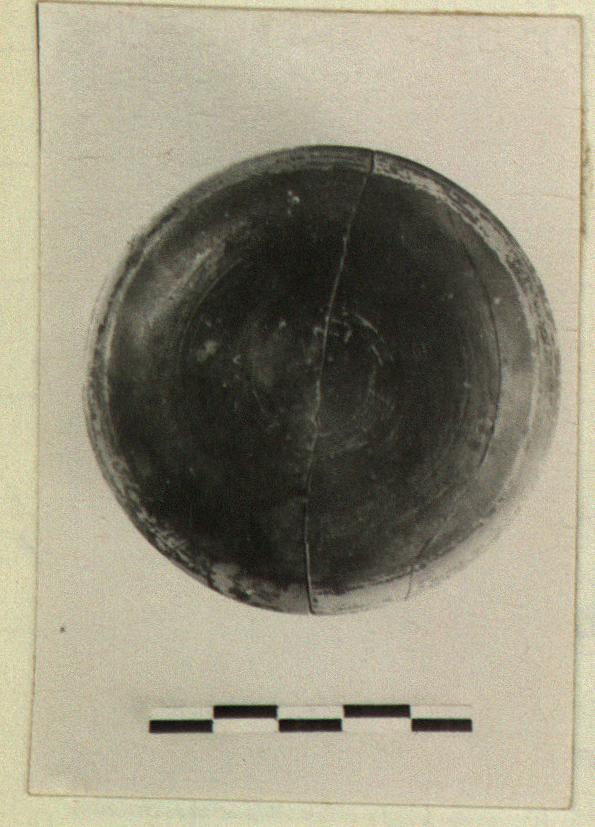 Description:   Mended complete. Similar to P 20067 (ΟΟ 1146) but the wall slightly concave outside, and the glaze covering more complete.