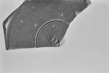 Description:   Less than half of the floor of a Sigillata bowl with flat bottom. At center of floor, part of dotted rosette, within an incised circle.
