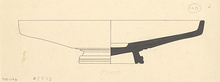 | Description: | About half preserved; broken and repaired along line of ancient mend; two rivet holes preserved, with lead in one. Lid slightly domed, with downturned rim. Large handle, like ring foot, projecting; grooved on the top. The center beneath has a circular depression like a fish plate. Firm glaze inside and out. Reserved, the edge of the rim and the top of the handle. The groove on the top, and two scraped grooves around base of handle washed with pink. | |
