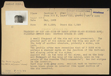 Description:   Lidless lekanis. A small fragment of the rim and side preserved. The greater part of the sphinx and the wing and part of the body of another creature, probably a siren, remain. The profile of the vase resembles that of P 2032 with perhaps a sharper curve at the junction of the vertical and sloping parts of the sides. Applied red on the body of the siren, and on the body and forepart of the wing of the sphinx, also on the petals of the rosette "Full-ornamente"; two red stripes on the interior.