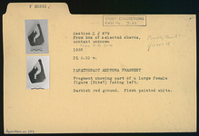 | Description: | Part of a large female figure (Nike?) facing left. Darkish red ground. Flesh painted white. Cf. P 20378. | |