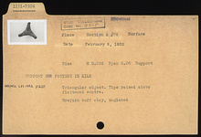 | Description: | Triangular object. Tips raised above flattened center. Grayish-buff clay, unglazed. | |
