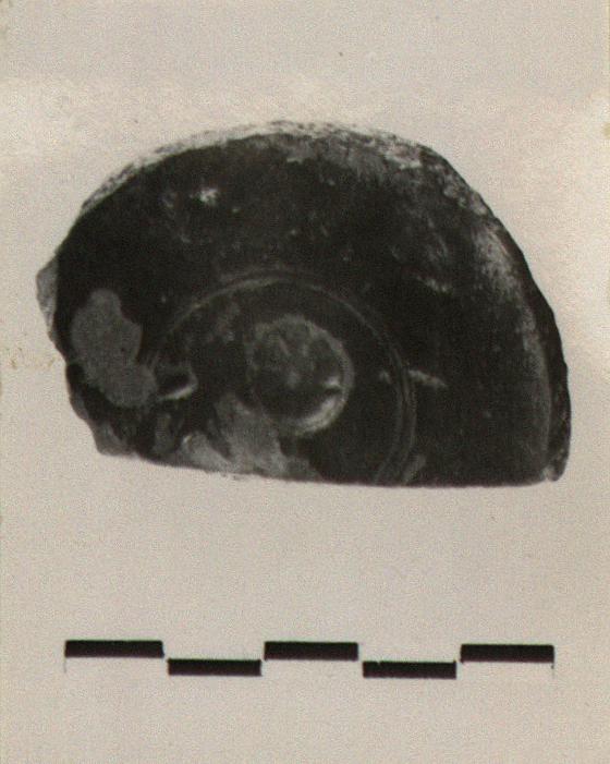 | Description: | From the flat floor of a small bowl. Rosette stamp within an incised circle. Cinnamon-brown to gray micaceous clay, Samian. Glaze black on floor, red to black on bottom. Sigillata Ware. | |
