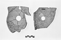 | Description: | Irregular fragment from side wall of closed pot. Near center of fragment, circular hole (diam. 0.029). Inside and out, wide loop of glaze surrounding hole. Glaze runs onto break on one side and bottom. Gray clay. Glaze deep slaty gray. ADDENDA Agora Sample no. 859. | |