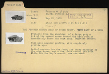 | Description: | Probably from the shoulder of a large pot; a bit of the upward curve toward the neck remains. Head of youth, right. Curiously angular profile, with completely profiled eye. Part of a wing. Relief contour for the face; the inner markings of the wing brown and a few locks around the face. White for the boy's wreath, now vanished. | |