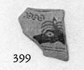 | Description: | [Originally identified as shoulder fragment of small closed vase.] Head of bridled horse to left; in field a length of braid pattern. Red glaze. | |