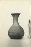 | Description: | Intact; small chips. Flat bottom; squat body; tall neck merging with broad flaring lip. A lightly incised circle on bottom and two others around the lower part of body. Light reddish-buff clay. Unglazed. | |