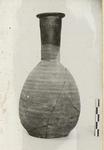 | Description: | Scattered pieces missing. Onion-shaped, large. Deep pear-shaped body; tall neck; flat rim. Heavy gray fabric; shallow grooves on body; matte black glaze on neck. Fragments of several unguentaria of similar shape but of more common thin light red-brown clay stored with pottery. | |