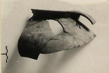 | Description: | Nine joining fragments preserve about one-third of lip and shoulder, and part of wide vertical strap handle of wide-mouthed plump-bodied pot. Micaceous orange-buff clay. Dilute red wash in streaks on outside. Cf. Agora XII, no. 1928. ADDENDA Probably two-handled chytra. For lip profile cf. P 16066. | |
