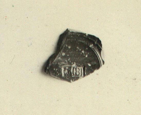 | Description: | Broken on all edges; a bit of the circular groove left. In the center, in a rectangular stampe: V I B I Light reddish-buff clay; excellent red glaze. Western Sigillata Ware. | |